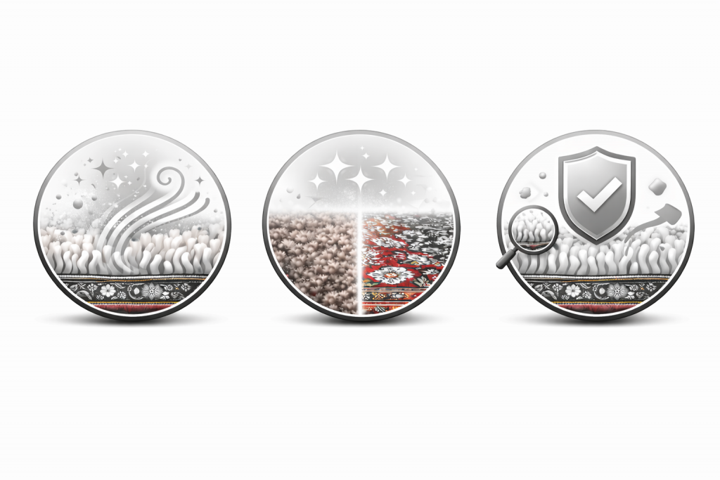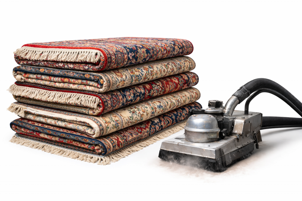 Using the right equipment is key to high-quality rug cleaning. From powerful vacuums to specialized dry cleaning machines, our tools ensure a deep clean that protects your rug’s fabric and extends its lifespan, keeping it vibrant and fresh for years.